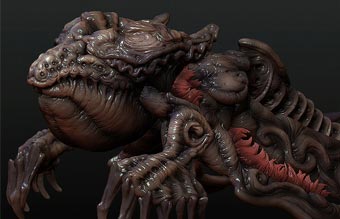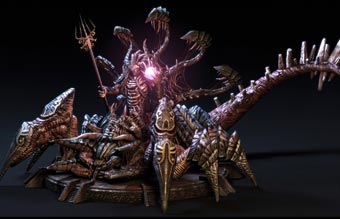 -I think we had 2 months to complete this. This character was created during the first couple months when I got first hired at Blizzard for the StarCraft II team. I was totally inspired from the designs of the Zerg race - such as the Queen, Hydralisk, and the Infestor. So I finally decided to make something disgusting with crab shells, tentacles, spikes and more spikes - And that's how Lord Thanatos was created =)