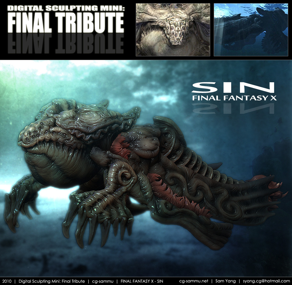 -I don't really have a favorite actually, they are all great in their own unique ways. The types of models I enjoy creating the most are creatures, girls, and mechs for sure. Sin from Final Fantasy X might be my favorite piece if I had to choose I guess? It was difficult to find good reference for this guy, and plus nobody has recreated him before! I enjoyed doodling creatures when I was young, so this was more natural for me to work on. I enjoyed sculpting the different types of wrinkles on the skin and the fur.